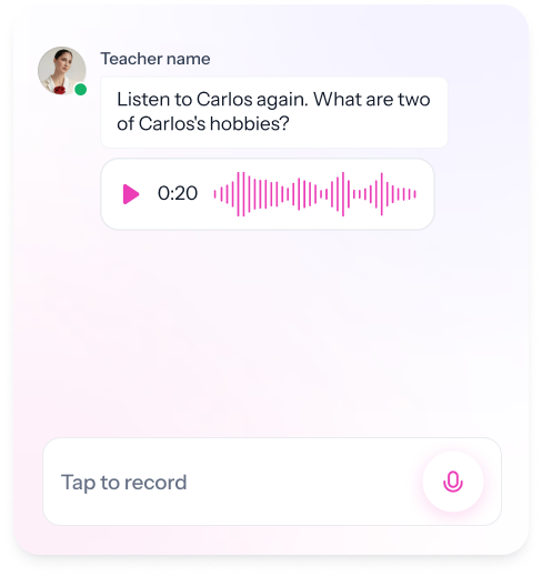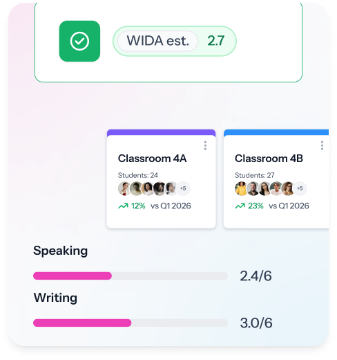 From daily speaking and writing practice to program-wide progress tracking, everything lives in one place.