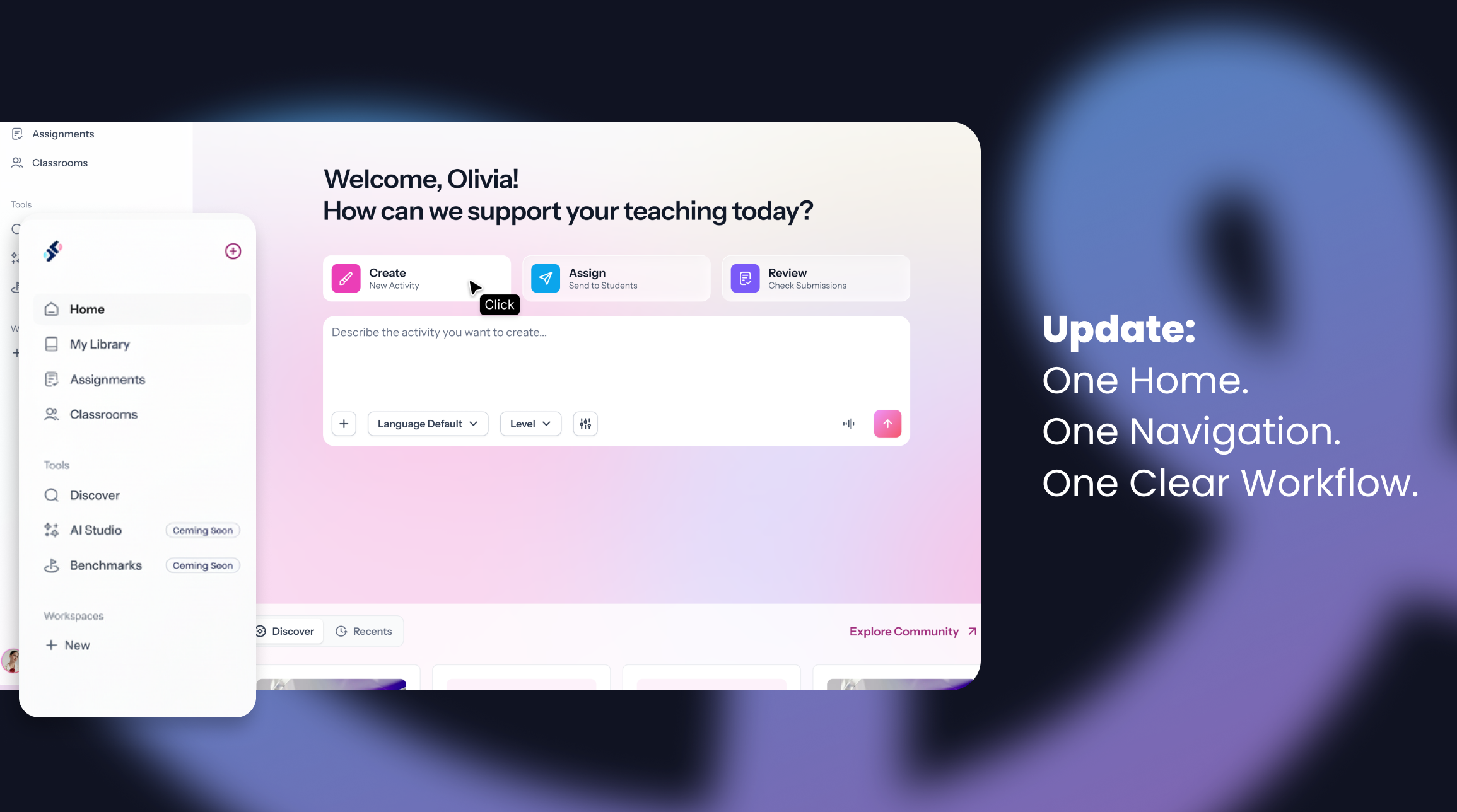 This update reorganizes Speakable around the way many teachers already move through their work: create an activity, assign it, and review student responses.